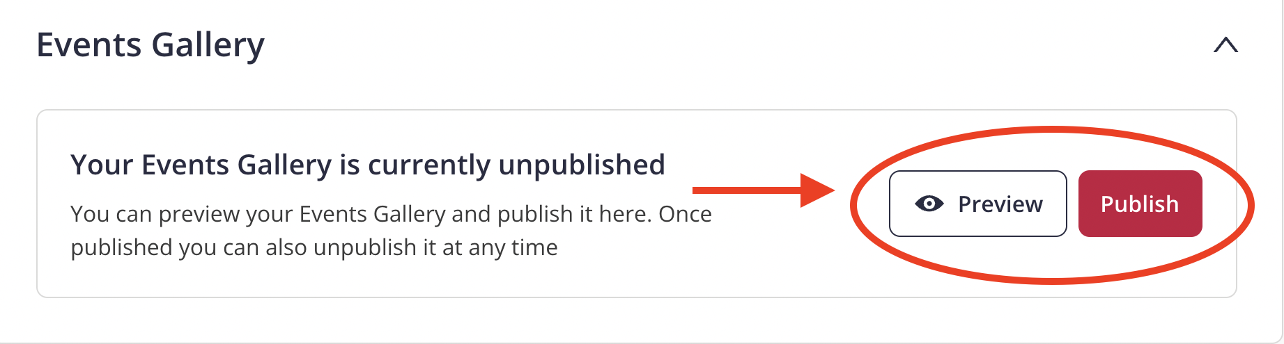At the bottom of this section you will have your events gallery, which is an overview of all your event's landing pages.