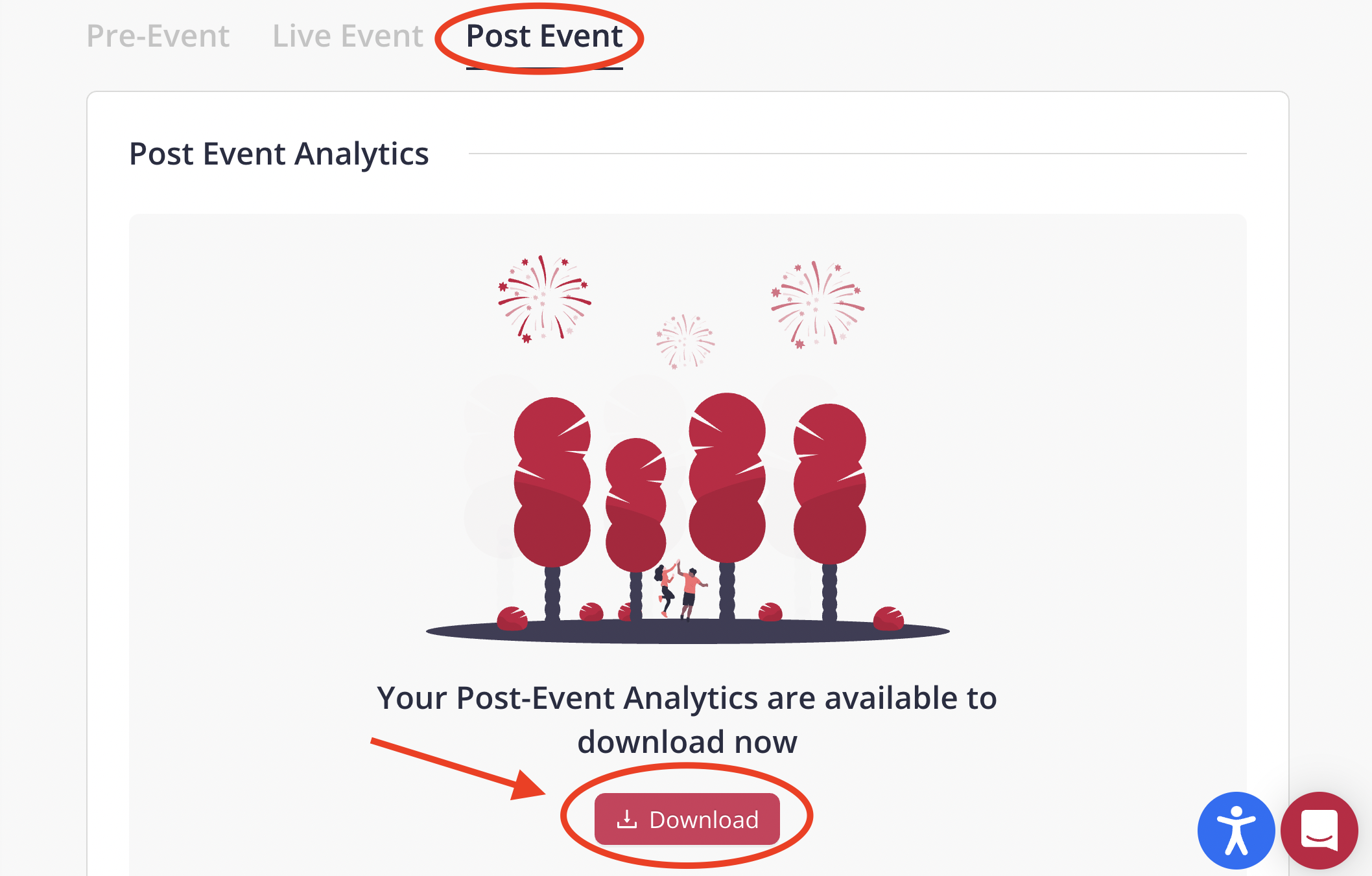 As an organizer you are able to view and monitor the pre-event, live event and post-event analytics. Specifically the post- event analytics can provide a lot of meaningful insight for you to review your event and analyze the data, as well as collect improvement ideas for your next event.