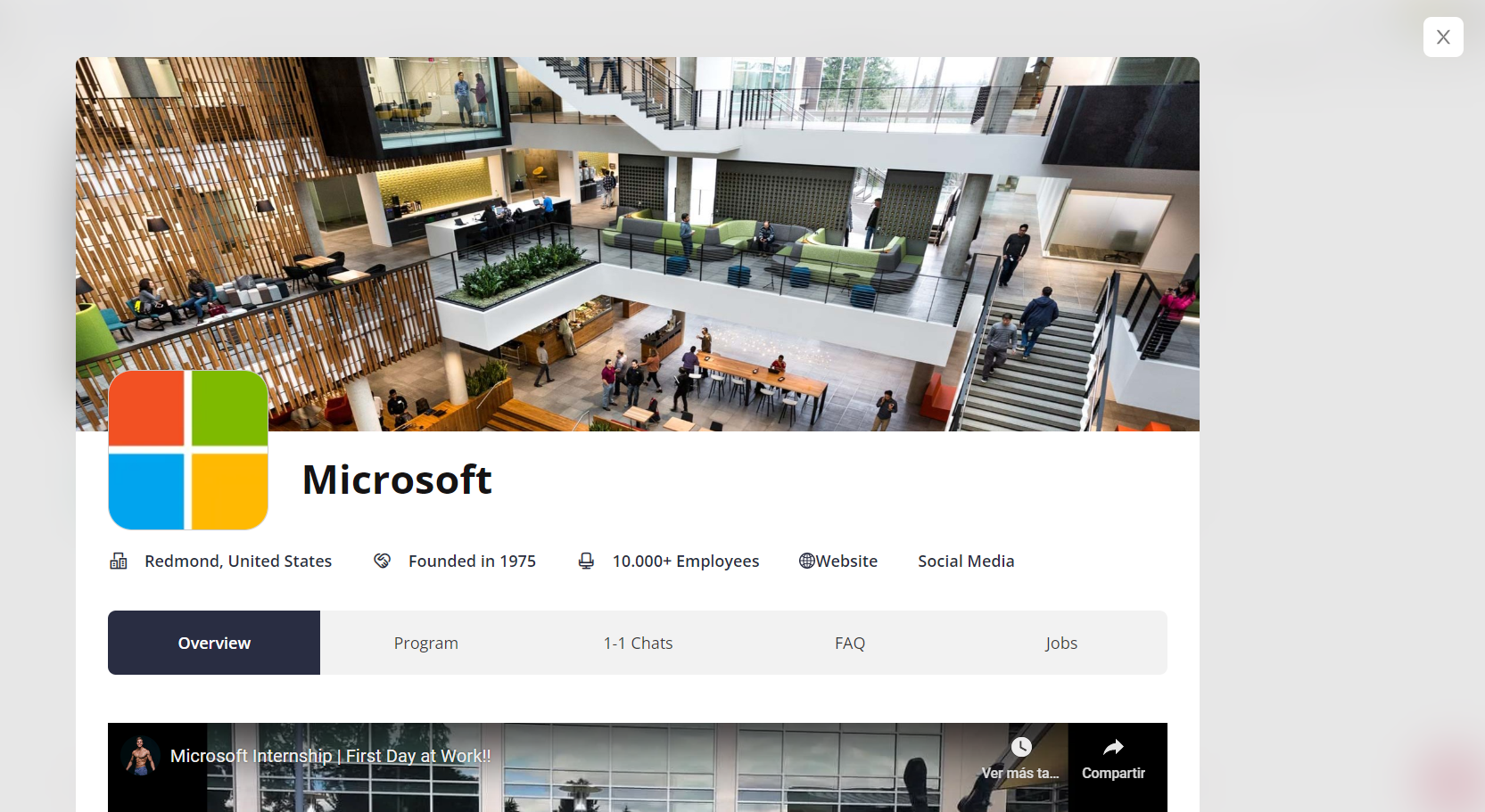 You will be able to see the overview, FAQs and job postings you created, as well as any program points and 1-1 Chat availabilities from the talents' perspective.