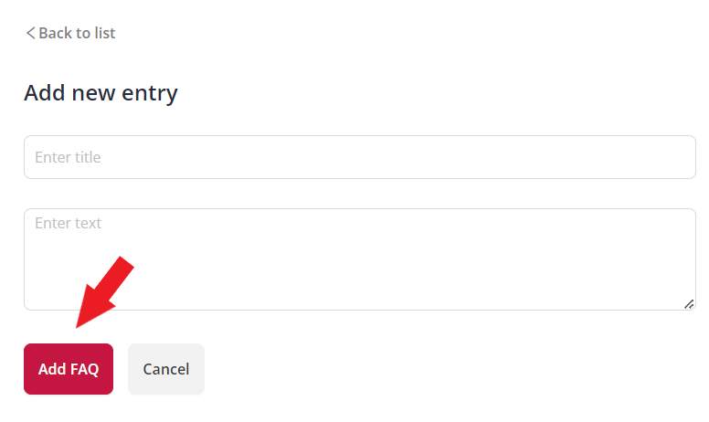 To add a new entry, click on "Add FAQ" in the top right corner, or simply click on one of the empty "Add FAQ" fields.