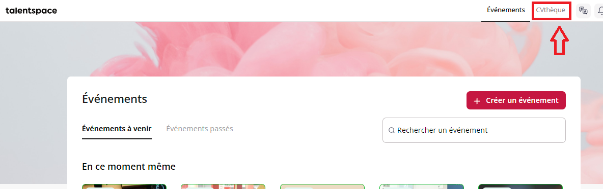 Si l'organisateur de l'événement vous le permet, vous pouvez envoyer aux talents une demande d'entretien à partir de l'onglet "CVthèque" dans la barre de navigation supérieure.