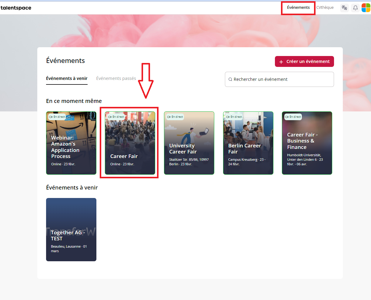 Dans l'onglet "Événements", cliquez sur l'événement auquel vous participez.